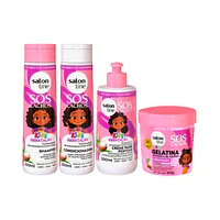 Kit SOS Cachos Kids Salon Line: Shampoo + Acondicionador + Crema de Peinar + Gelatina (4 Productos)