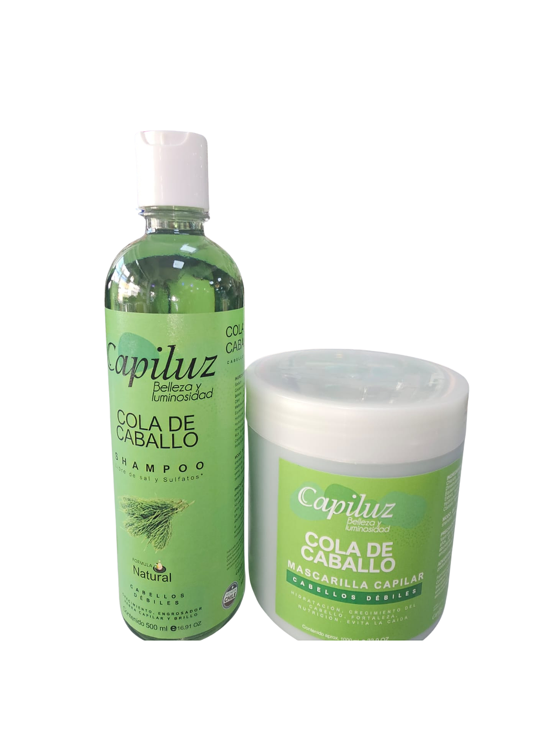 Lave el cabello con shampoo COLA DE CABALLO, deje reposar por 5 minutos y luego enjuague.