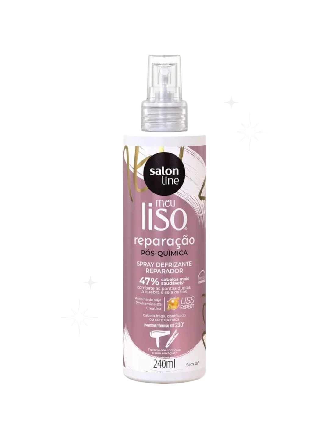 Combinar con otros productos de la línea: Para un tratamiento completo, combina el spray con otros productos de la línea Meu Liso, como champú, acondicionador y mascarilla.